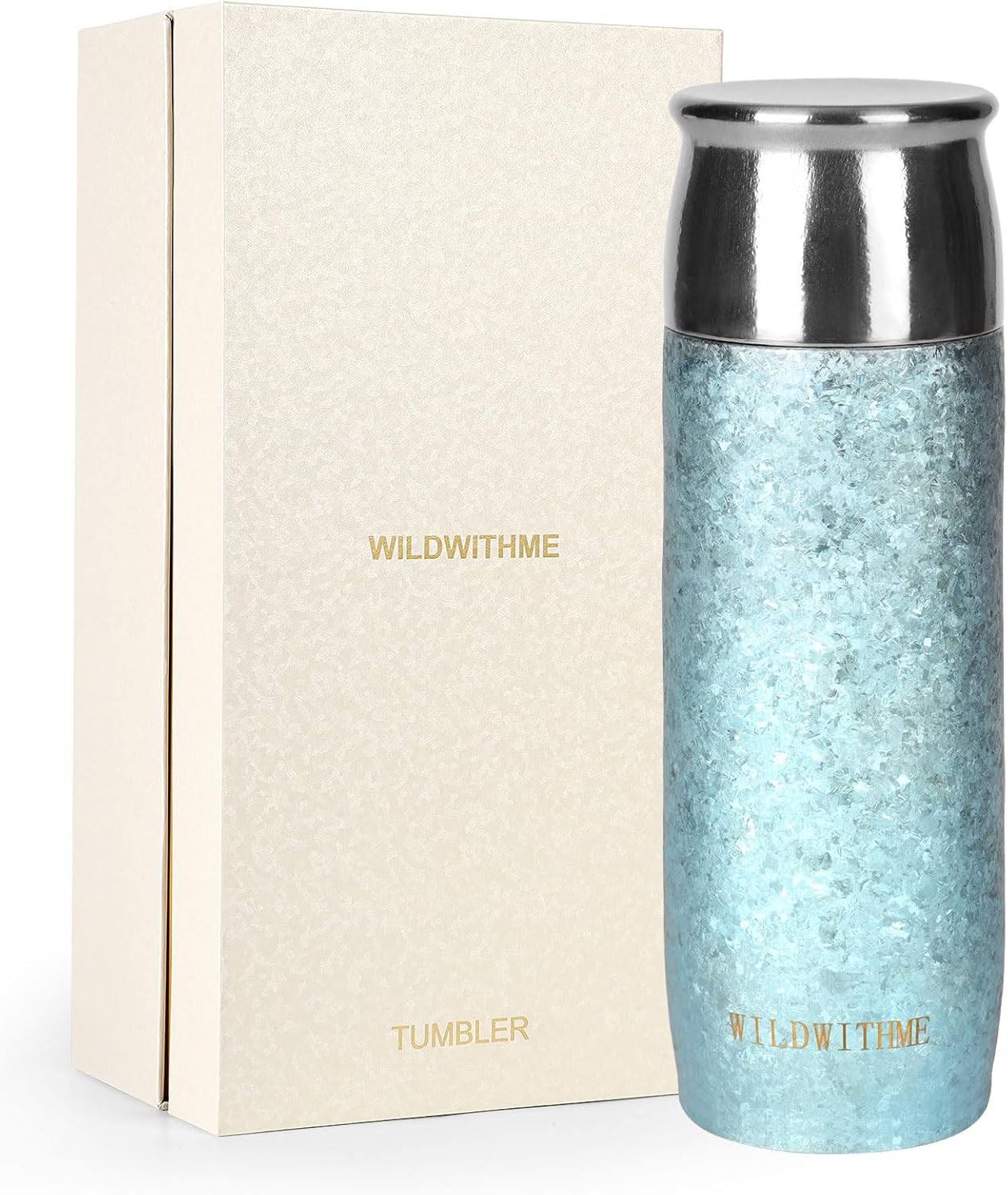 Titanium Magnetic-Lid Travel Water Bottle 15.5 oz (460 mL), Vacuum Insulated Slim Design, Wide-Mouth, Leak-Resistant, with Removable Titanium Strainer, Sky Blue