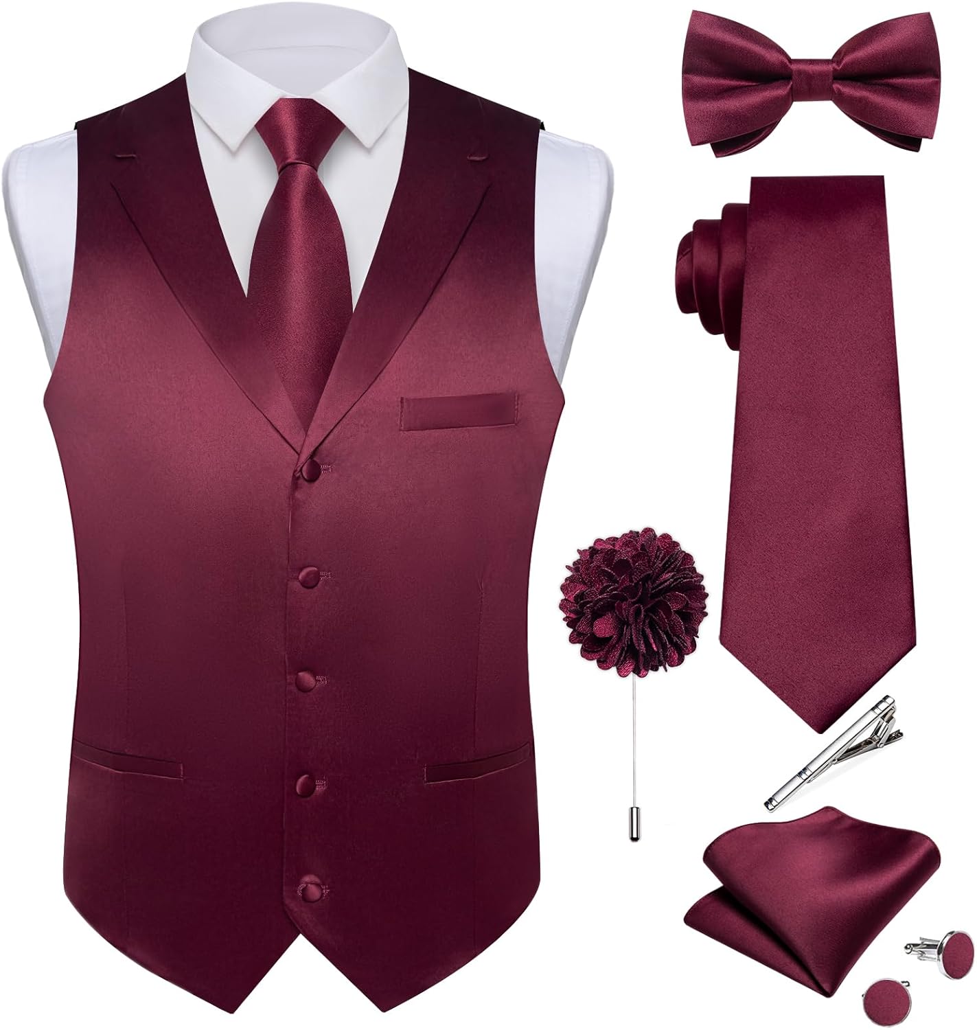 DiBanGu Formal Suit Vest Tie Set for Men Classic Solid Notch Lapel Dress Waistcoat Satin Vest Bowtie for Wedding Party