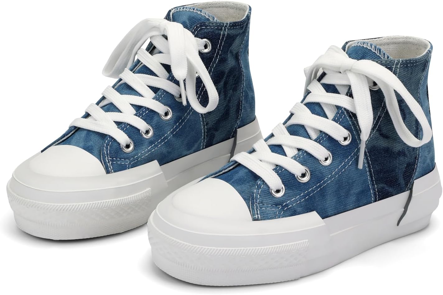 ANTLULU Girls’ Platform Canvas Shoes Low Top and High Top Canvas Sneakers Lace-up Fashion Casual Shoes for Girls