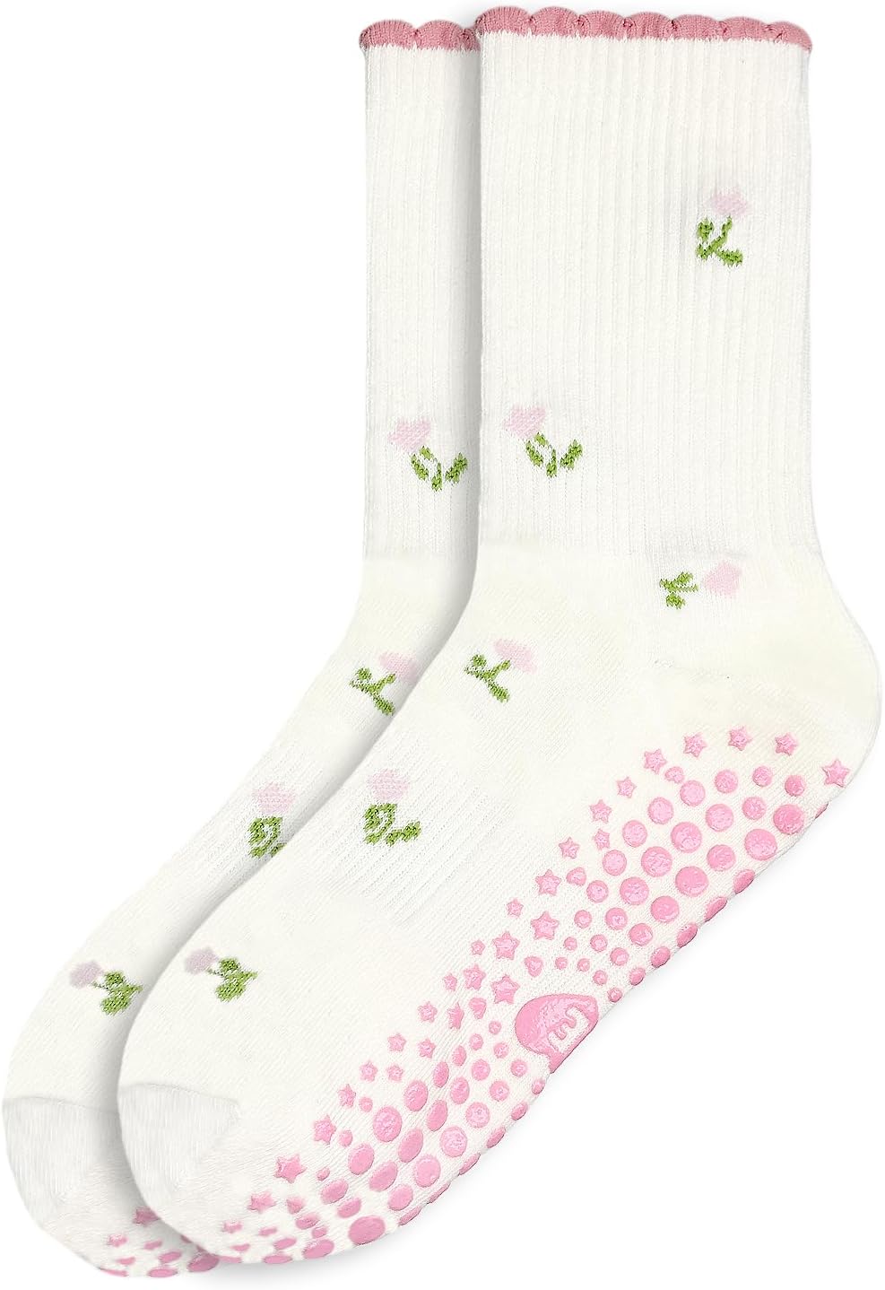 Pilates Crew Socks for Women Ruffle Grip Yoga Barre Cute Non Slip Sticky Workout Dance Sock