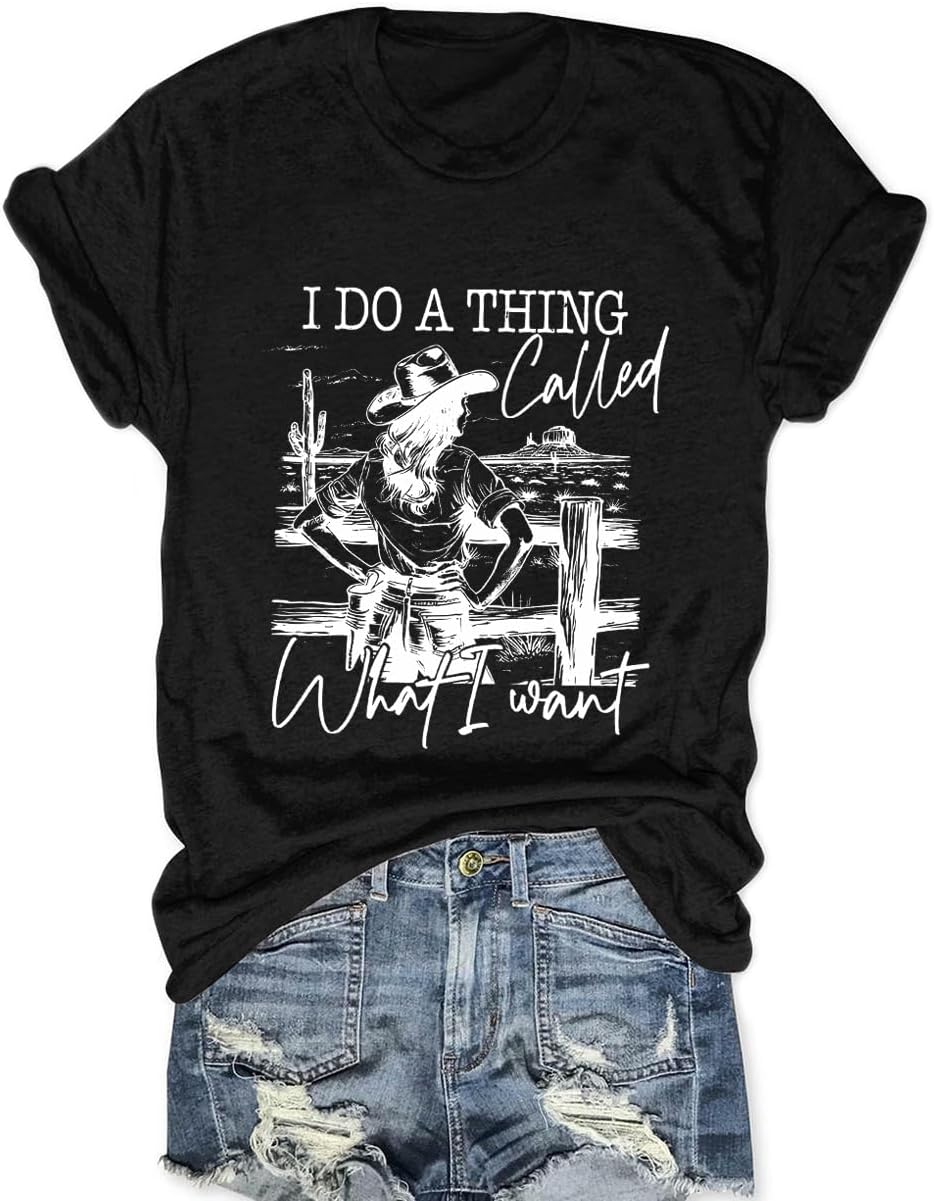 Savarana Western Cowgirls Shirts Women Vintage Graphic Tee Tops Funny Letter Print Country Music Tshirt