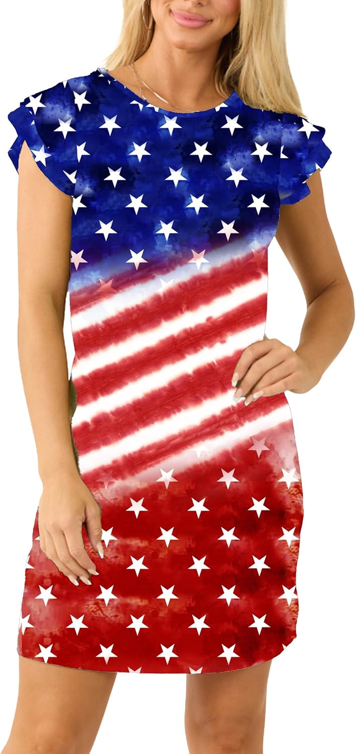 AOBUTE Womens 4th of July Dress American Flag Party Dresses USA Parade Mini Dress