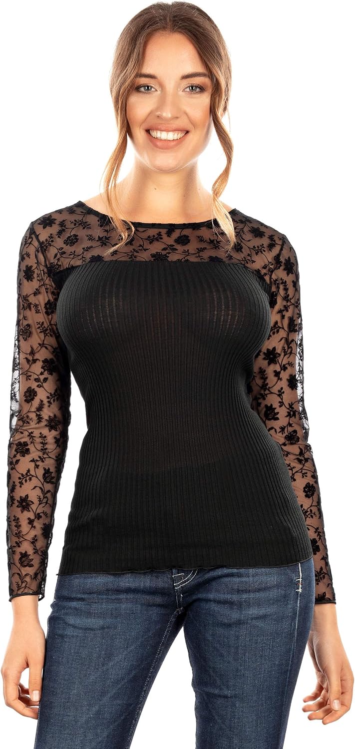 EGI ® Exclusive Collections Merino Wool Blend Top with Tulle Trim. Proudly Made in Italy.