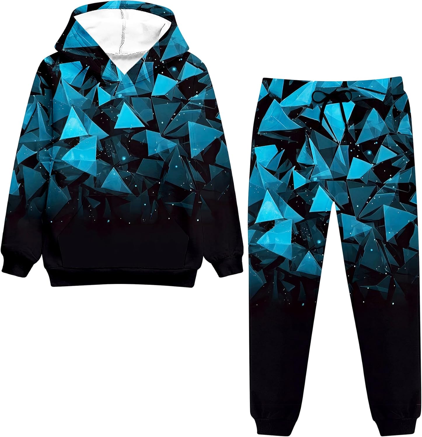 uideazone 5-14T Boys Hoodie Pant Sets Sweatsuit 3D Print Hooded Sweatshirt Sweatpant Set Kids 2 Piece Outfits Tracksuit