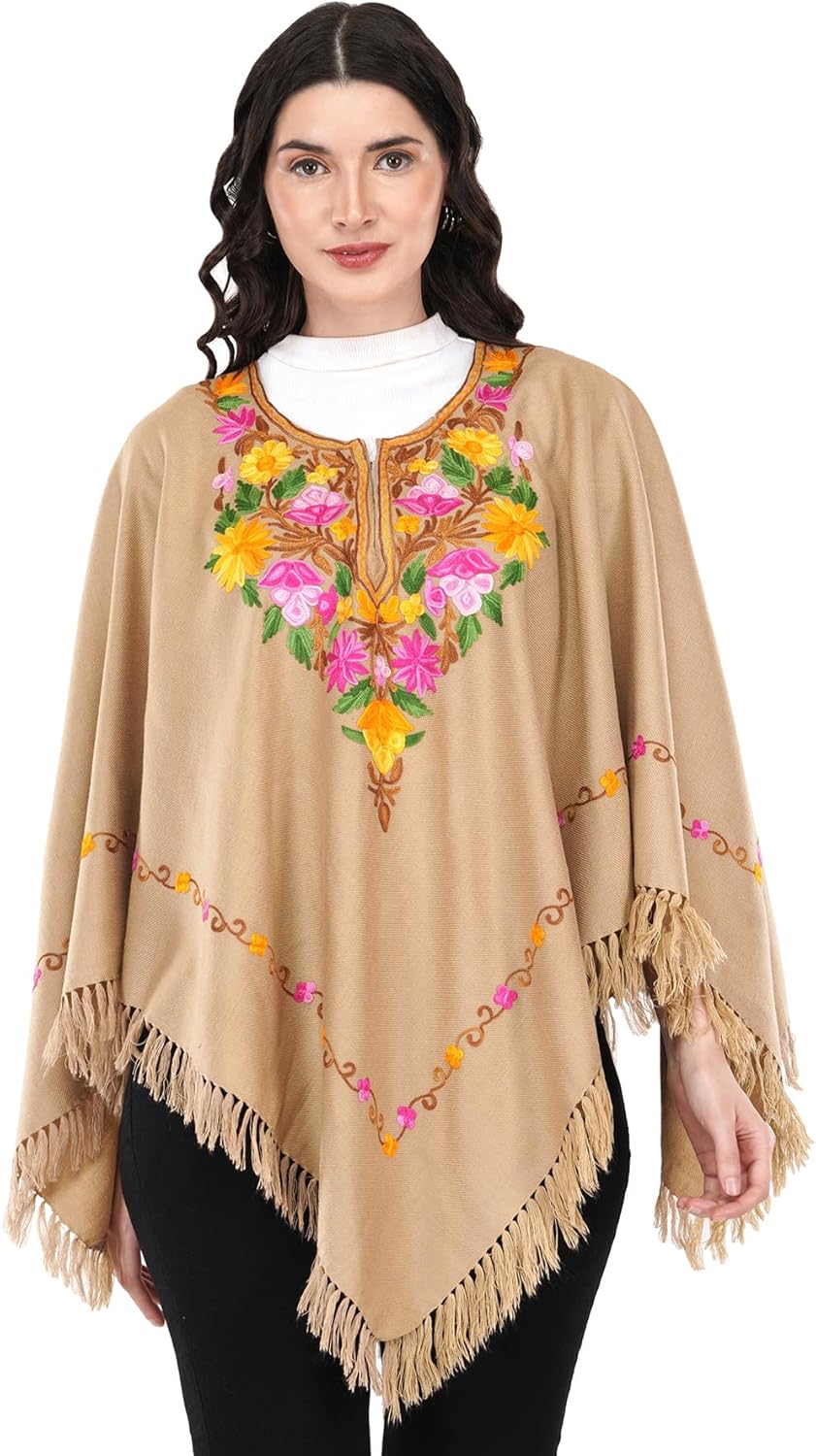 Premium Women's Kashmiri hand embroidery floral woollen poncho Indian cape wrap shrug Free size