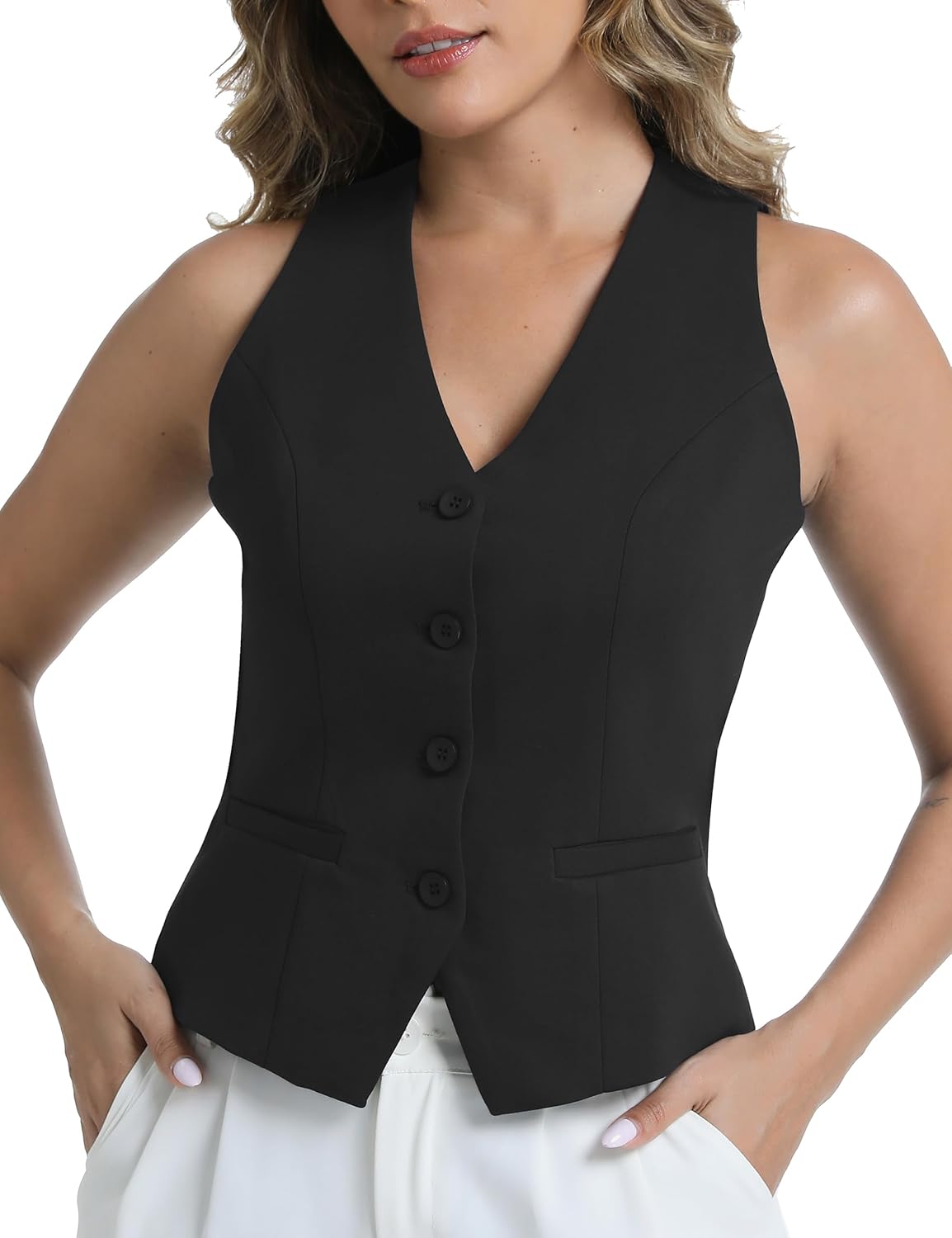 V VOCNI Vest Tops for Women V-Neck Sleeveless Button Down Trendy Vest Waistcoat Dressy Casual Top