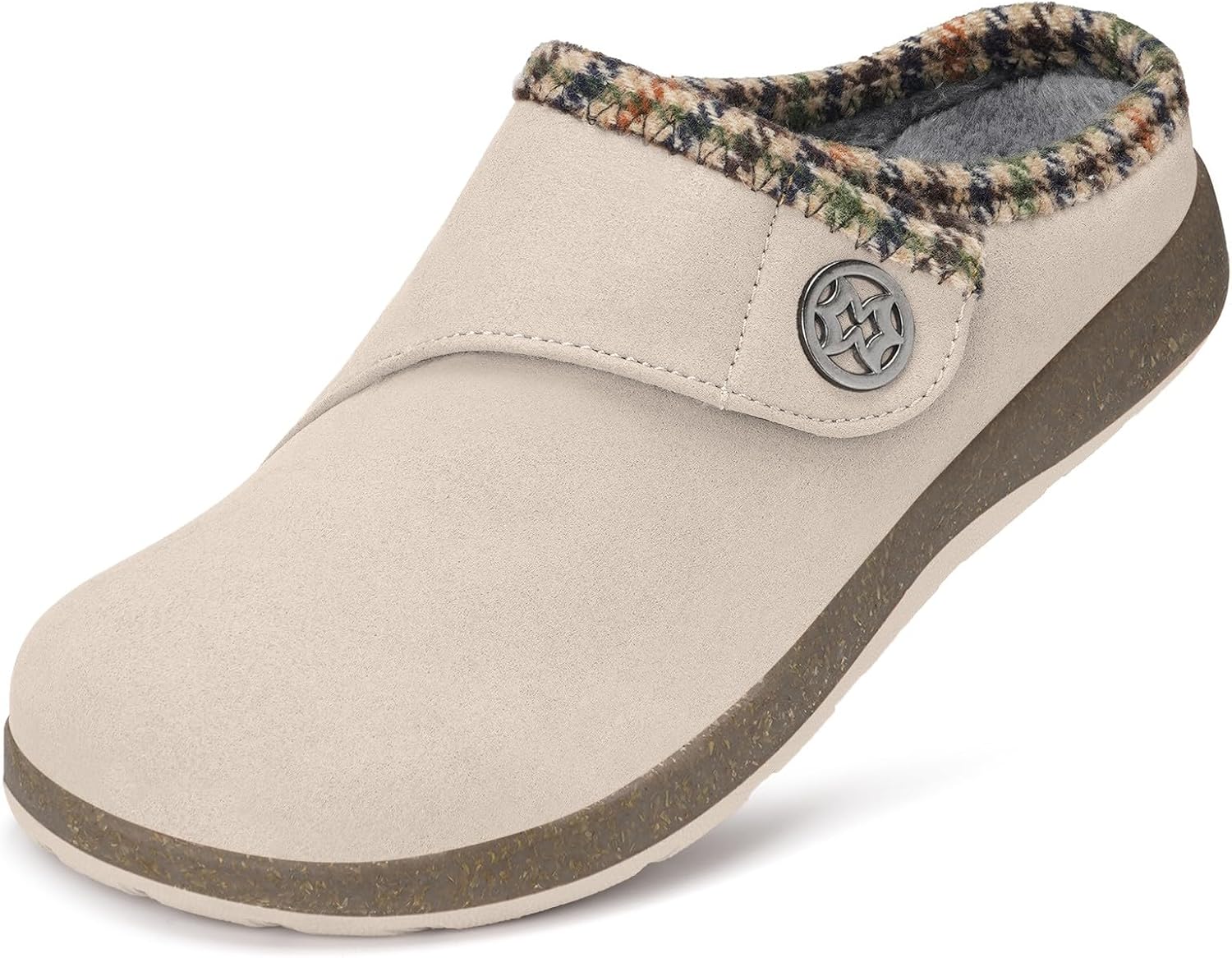 Eagsouni Women's Men's Wide Width Slippers Suede Fuzzy Slippers Winter Warm Fur Lined Slip on House Shoes Outdoor with Removable Cushion Footbed