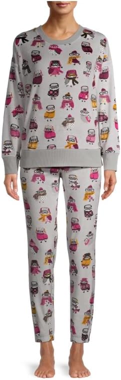 Secret Treasure Women's Velour Top and Joggers, 2-Piece Sleep Set (Small 4-6, Soft Sliver Owls)