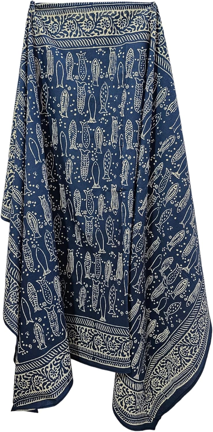 Indigo Blue Cotton Pareo Hand Dyed Scarves Indian Hand Block Print Sarong, Size 44x72 Inch