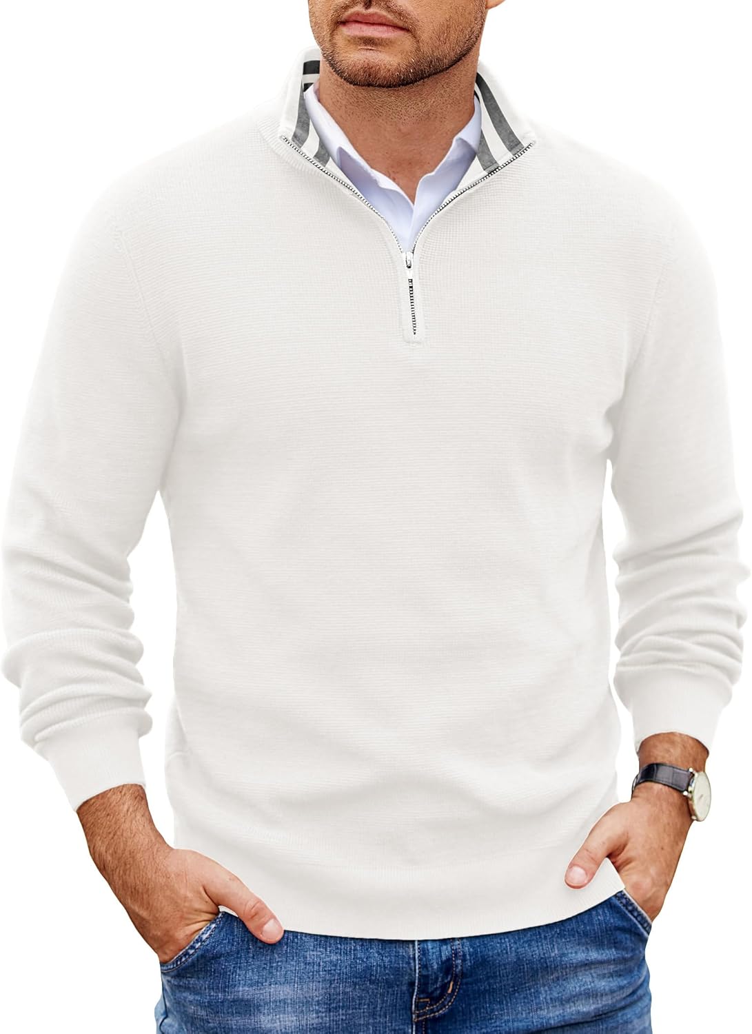 COOFANDY Mens Quarter Zip Pullover Slim Fit Lightweight Sweater Casual Mock Neck Knit Polo Sweater