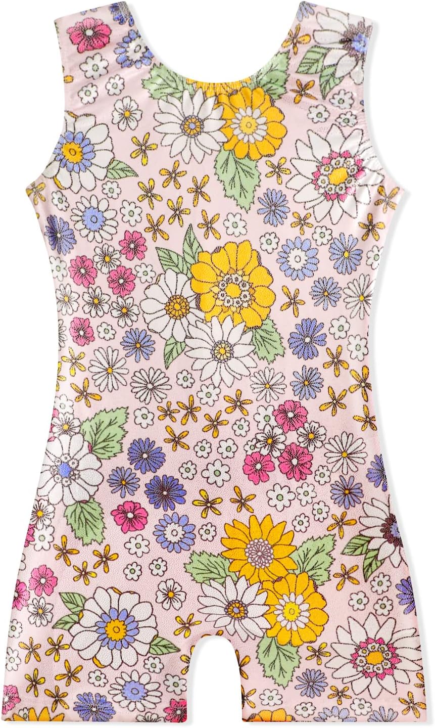EQSJIU Gymnastics Leotards with Shorts for Girls Unicorn Rainbow Balloon Flower Sparkly Gradient Colors Biketard 1-10 Years