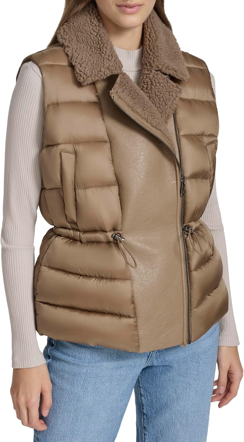 Andrew Marc womens Faux Sherpa Faux Leather Puffer Vest