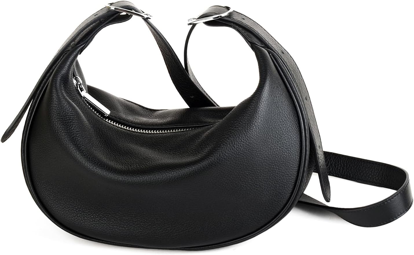 Casual Soft Leather Hobo Bags Women Crossbody, Trendy Crescent Shoulder Bag and Black Mini Purse (Black, Small)