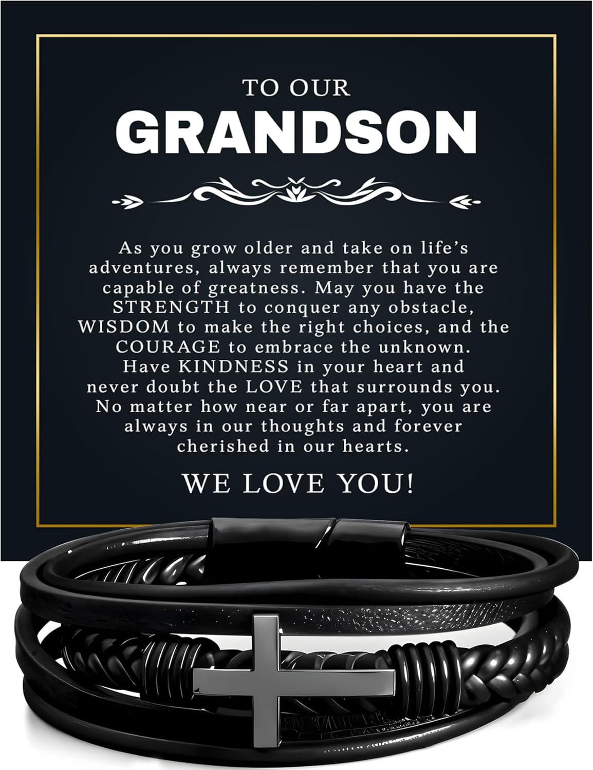 To My Grandson Bracelet Cross, Birthday Graduation Christmas Gift Bracelets Jewelry For Men From Grandparent With Heartfelt Message & Elegant Box