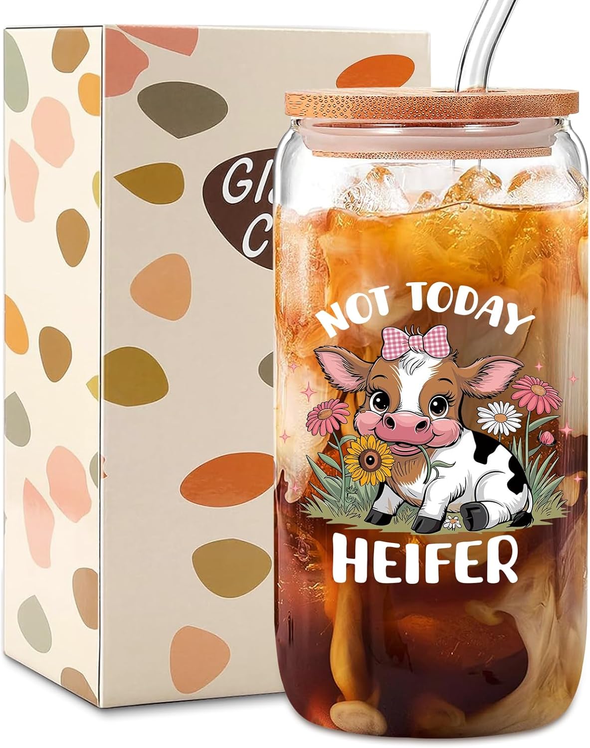 - 【Cute cow print stuff】highland cow gifts for women,Our 16 oz glass cup features a delightful design that combines humor with an adorable shaggy highland cow,The text adds a playful touch,making it a conversation starter at any event,Thoughtful highland cow gifts for cow lovers, highland cow enthusiasts,friends,family,or anyone with a soft spot for these lovable creatures