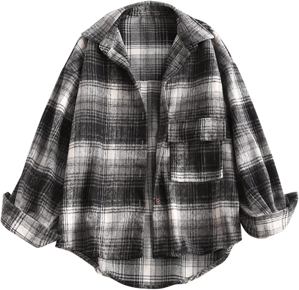 ZAFUL Women's Plaid Long Sleeve Shirt Button Down Thin Jacket Casual Flannel Plaid Shacket with Pocket