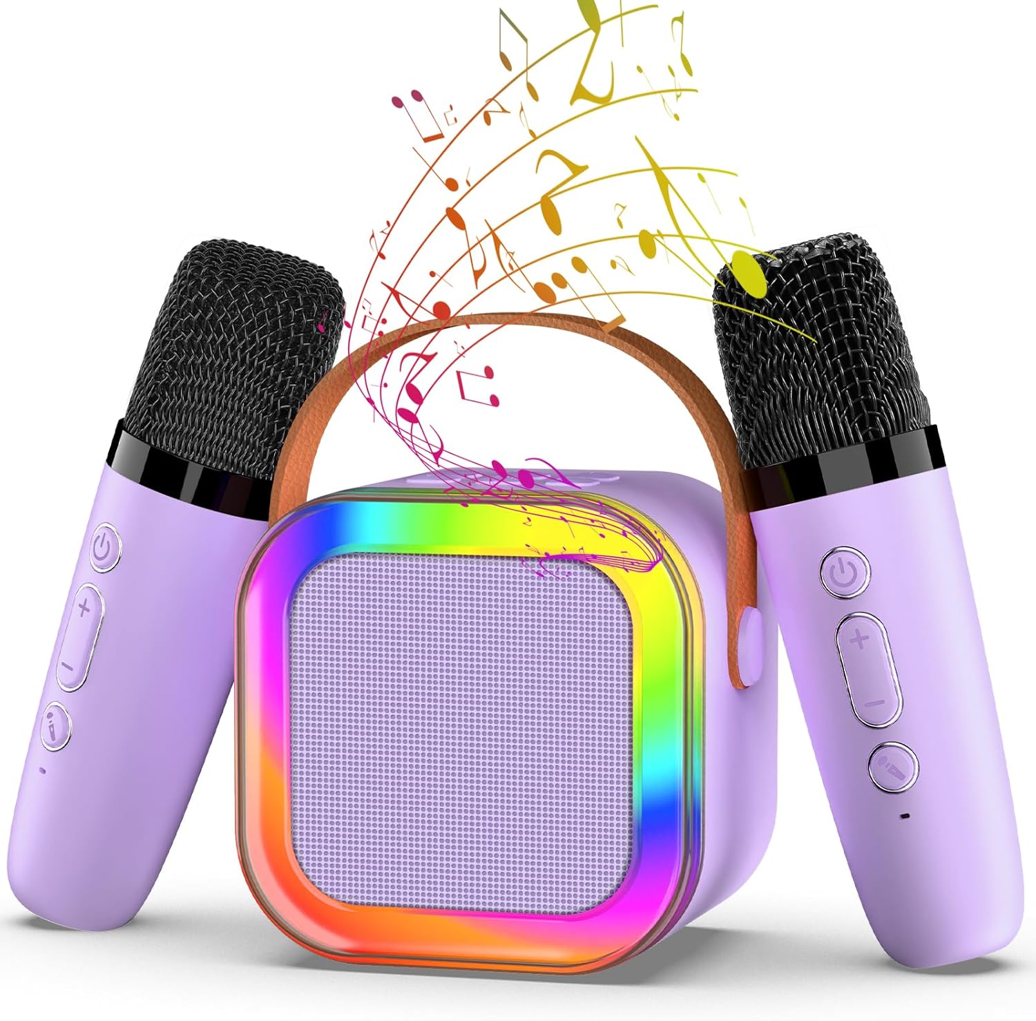 Mini Karaoke Machine with 2 Mics, Wireless Microphones for Kids Adults Toddler with LED Party Lights, Kids Microphone Christmas Birthday Gift for Girls Toys 4, 5, 6, 7, 8, 10 12+ Years Old 【Purple】