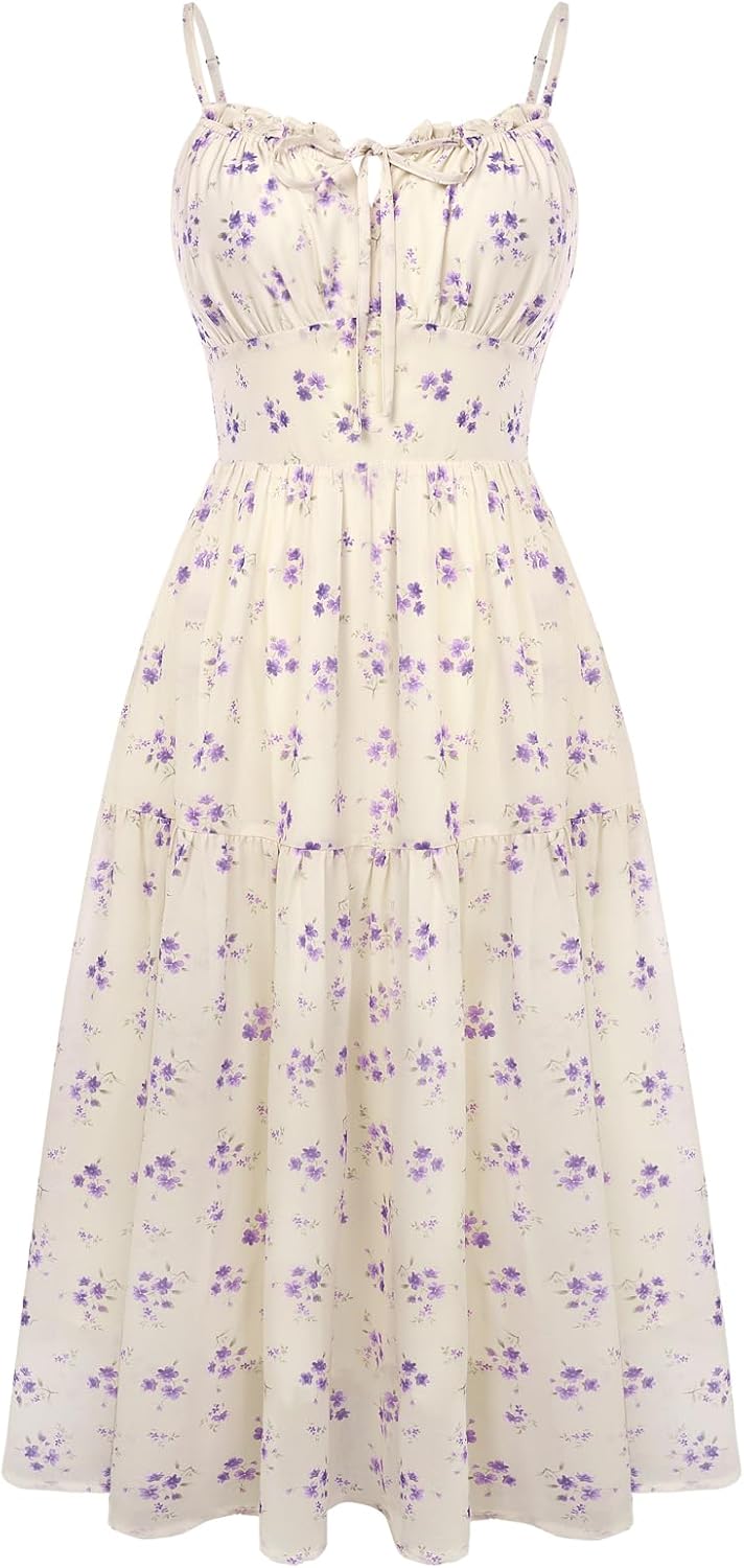 Belle Poque Floral Dress for Women Wedding Guest 2026 Spring Summer Midi Flowy Tea Party A Line Milkmaid Dresses
