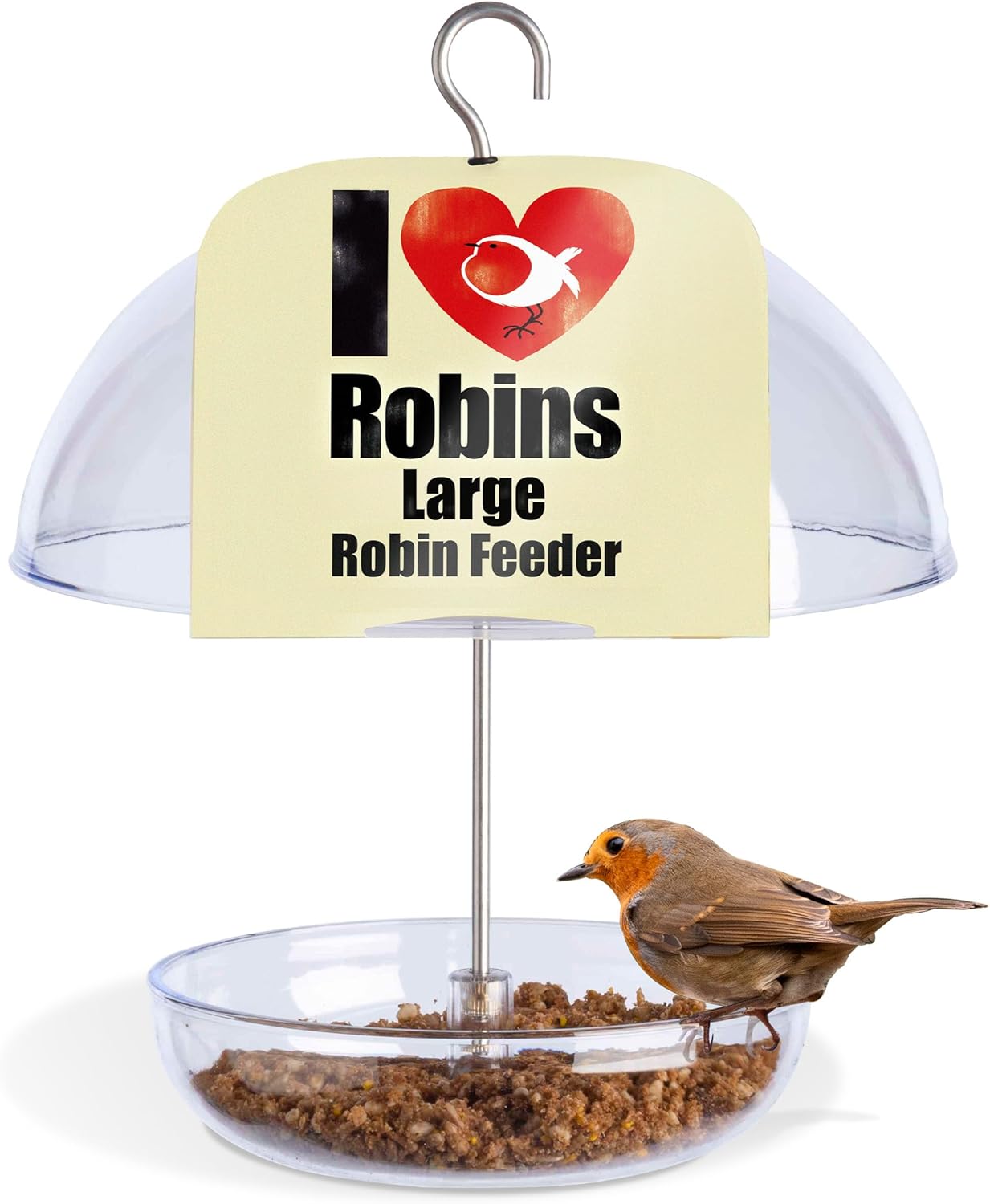 - [ Clear Visibility ] Enjoy a clear view of feeding birds through the crystal clear, UV stabilized polycarbonate bird feeder platform and dome. The clear dome also makes it a rain proof bird feeder.