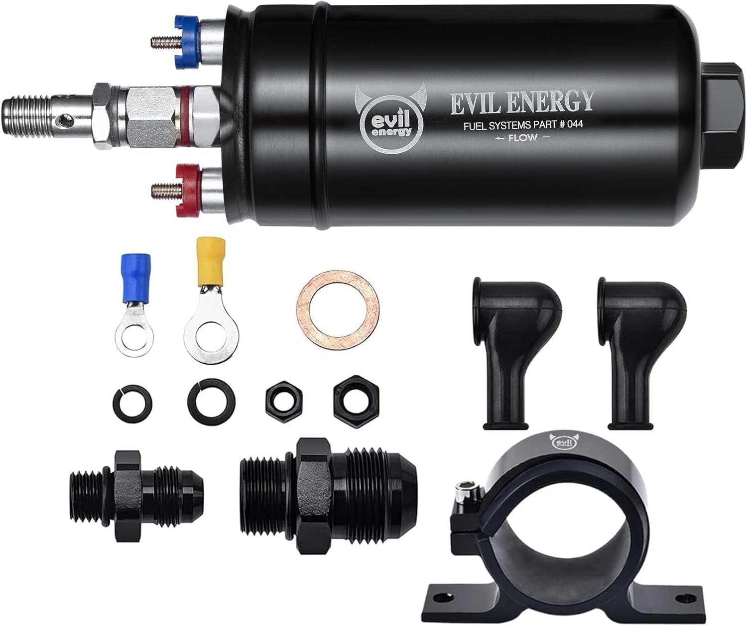 EVIL ENERGY External Inline Fuel Pump Electric 300LPH High Flow 12V with 60 mm Bracket Clamp Black