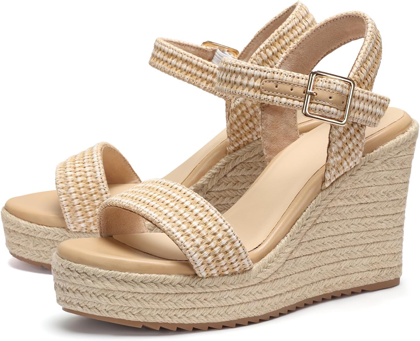 VICKI·VICKI Wedges for Women Platform Sandals Wedge Heels for Sandals Comfortable Summer Espadrille Shoes Ankle Strap&Open Toe