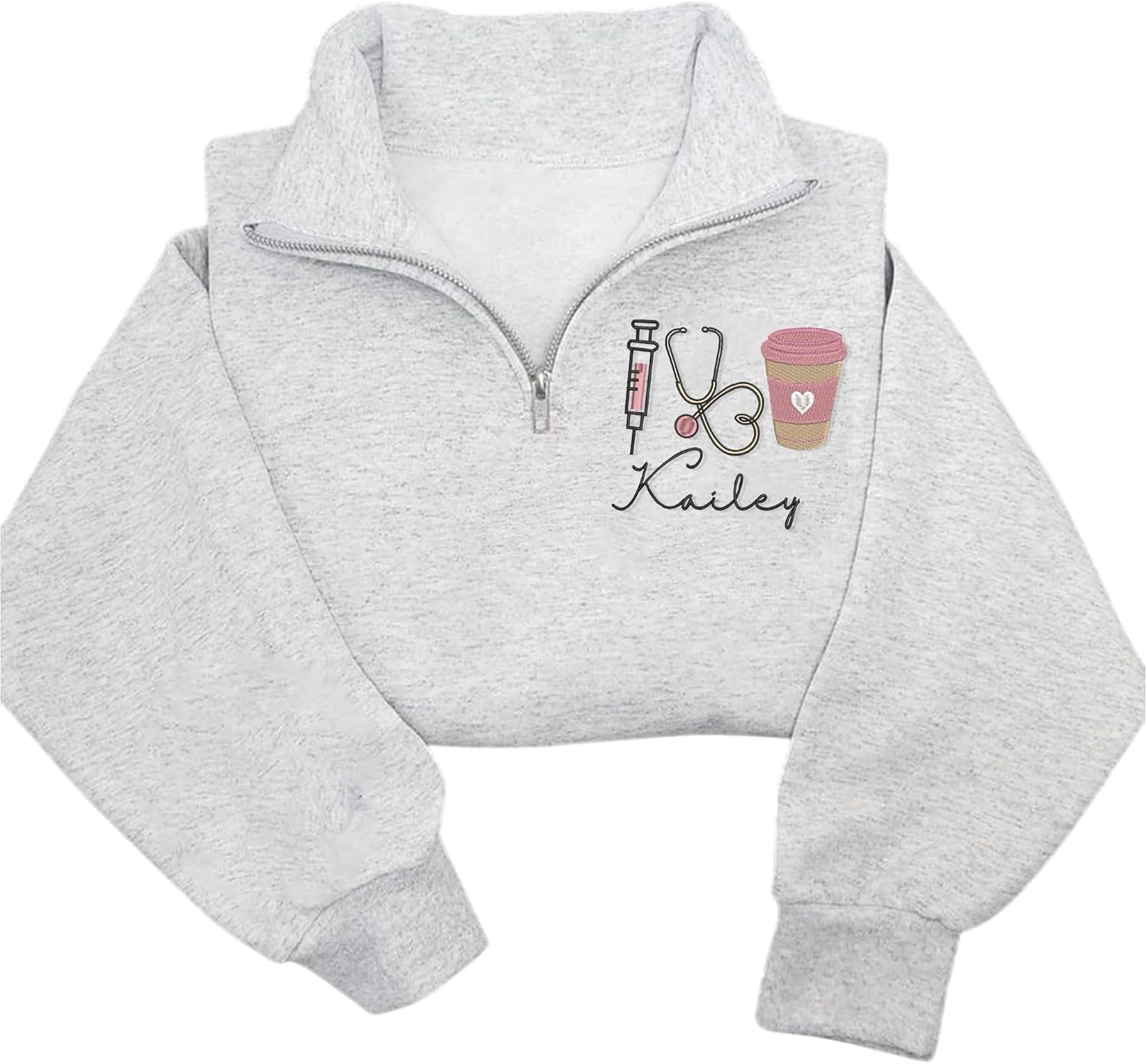 NANI Personalized Nurse Quater Zip Embroidered Sweatshirt, Custom RN CNA ICU MSN, Graduation For Nurse