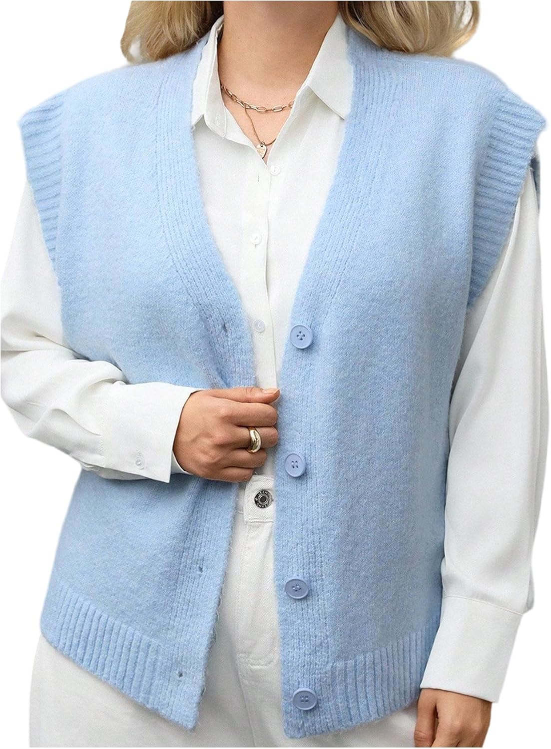WDIRARA Women's Plus Size Sweater Vest V Neck Sleeveless Button Down Cardigans Knit Tops