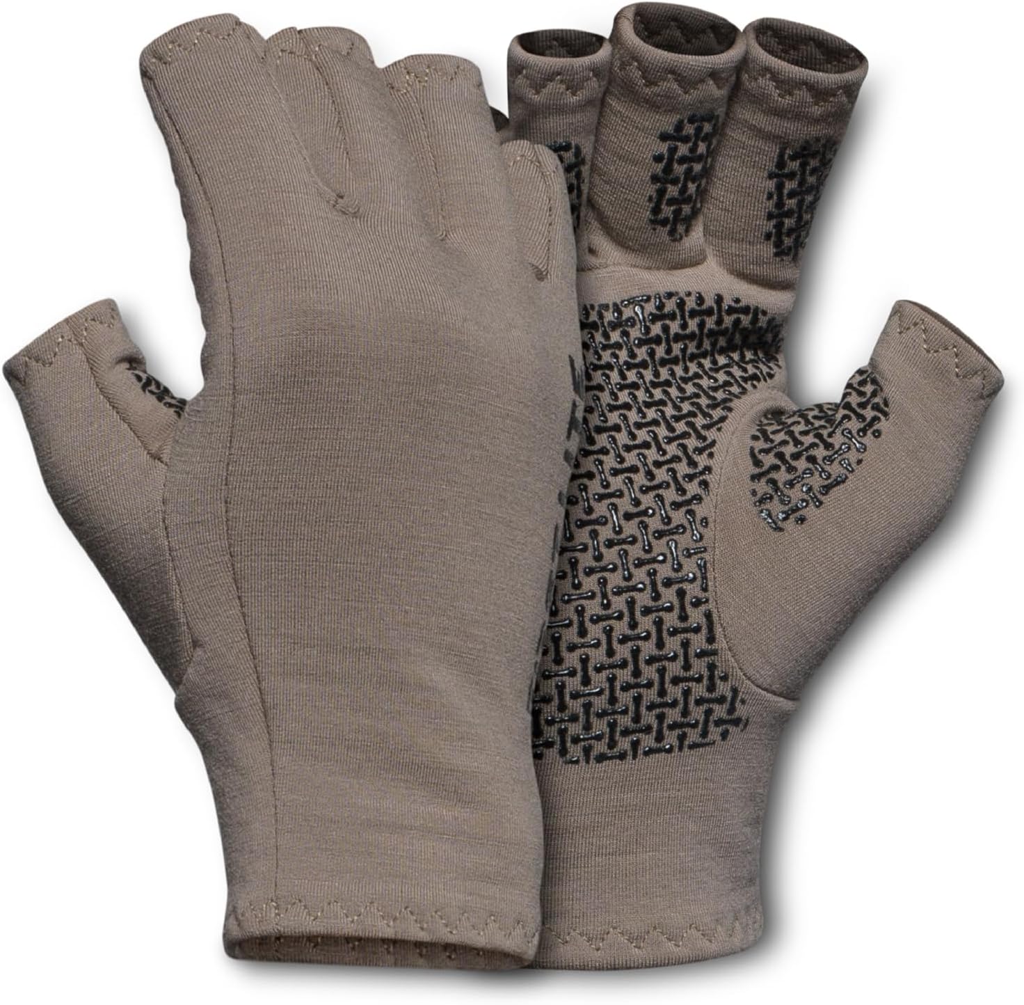 First Lite Rugged Wool Half Finger Glove - Merino Wool Hunting Gloves with Silicone Grip Palm for Shooting Dexterity