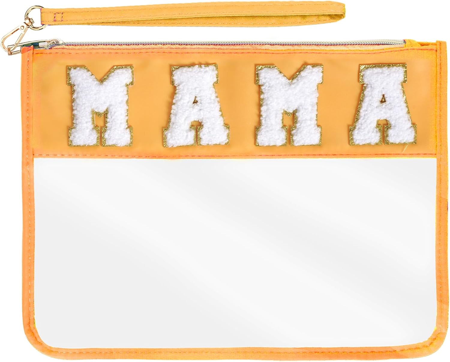 Chenille Letter Bag, Nylon Clear Cosmetic Bag with Zipper, Makeup Travel Pouch for Women Girls Gift (Yellow-MAMA)