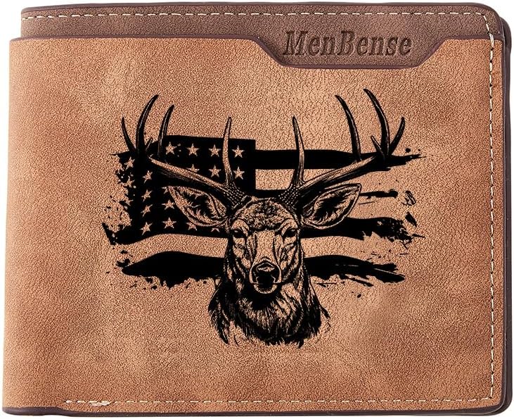 Kasutoo Men's PU Wallet Multiple Card Slots, Id Window with Laser Engraving Pattern (American Flag Deer)