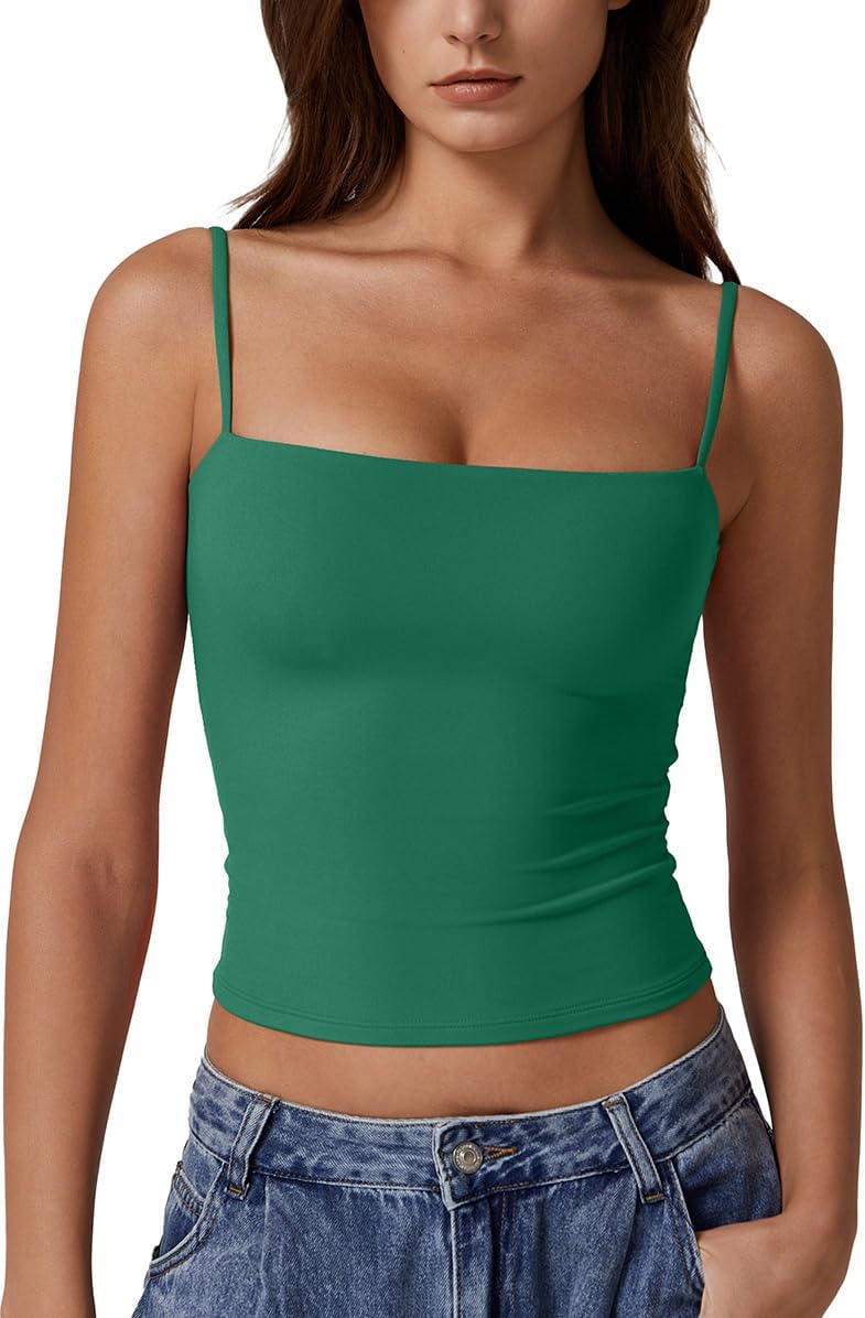 QINSEN Women's Double Lined Basic Tank Top Adjustable Spaghetti Straps Sleeveless Camisole Shirts