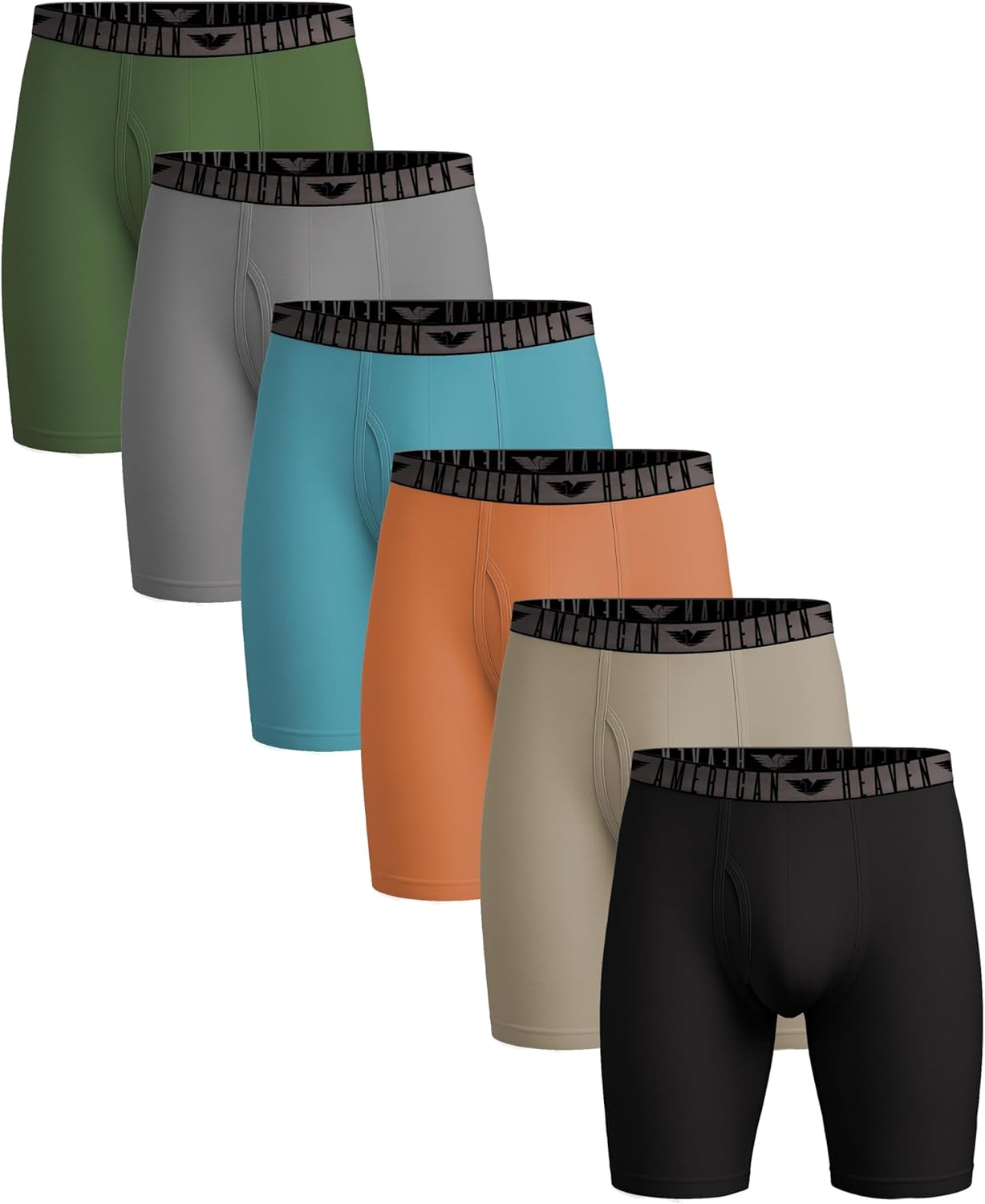 AMERICAN HEAVEN Men's Knee Length Boxer Briefs | Ultra Soft -Stretch Base Layer Boxer Brief with Fly-Pack of 6