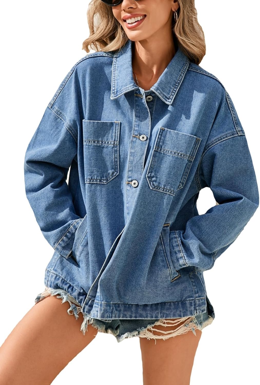 LifeShe Women Oversized Jean Jackets Trendy Boyfriend Denim Shacket Jacket