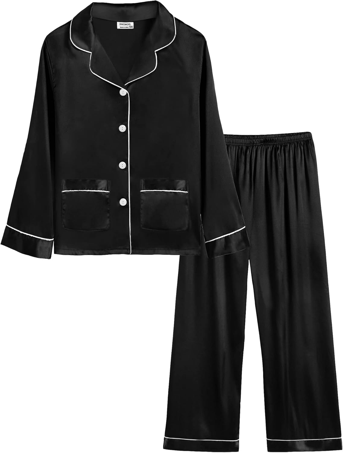 SWOMOG Girls Satin Pajamas Set Silk Button Down Pjs Set 2 Pieces Short Sleeve Kids Strawberry Sleepwear
