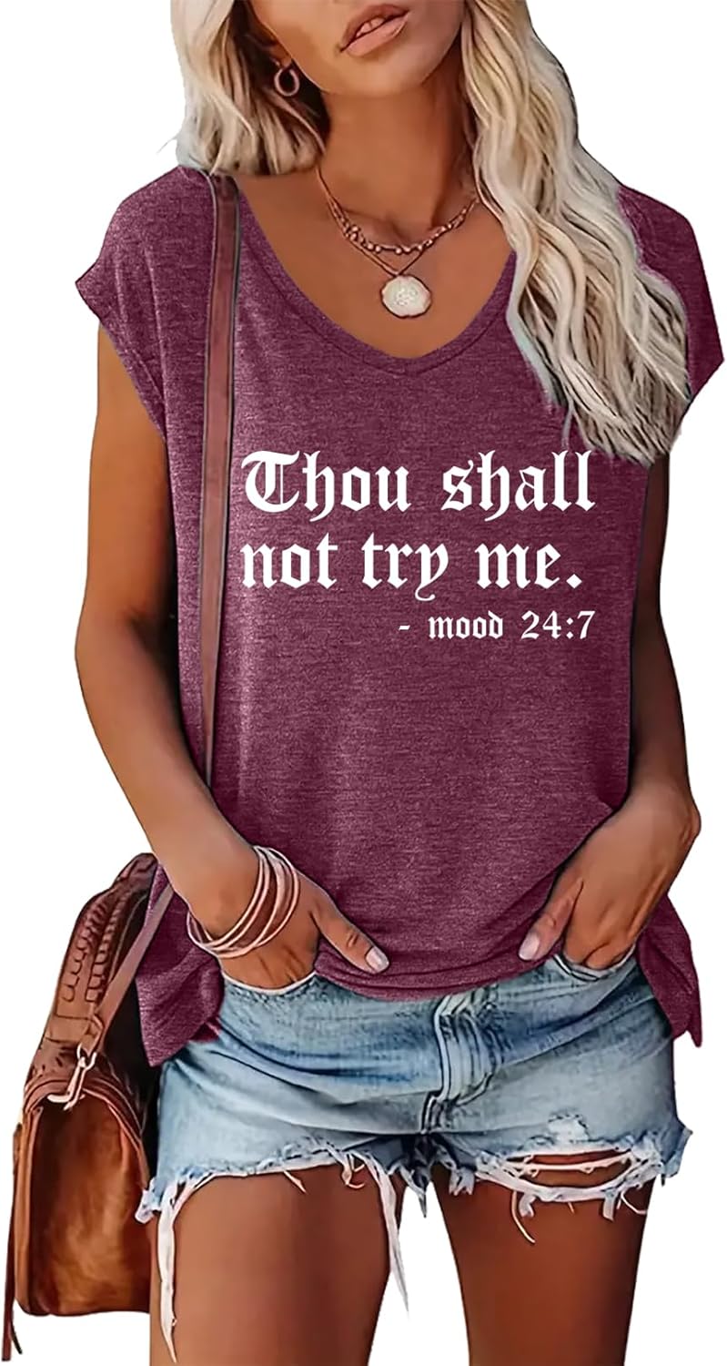 BLACKMYTH Women Funny Thou Shall Graphic V-Neck T-Shirts