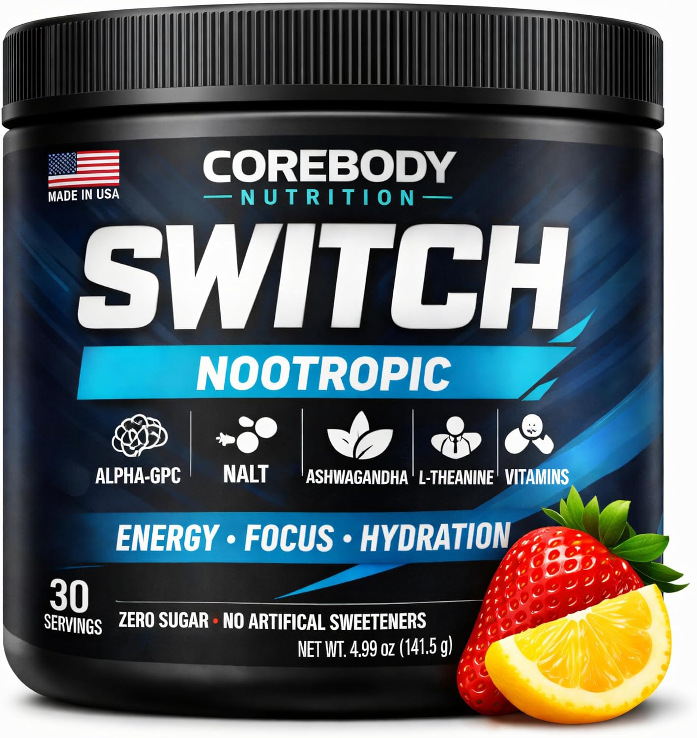 Switch, Brain Boosting Nootropic Energy Supplement Powder - Made in USA - Alpha GPC, NALT, Ashwagandha, Sugar Free Energy, Keto, Increase Mental Focus & Cognitive Function, Enhances Mood & Memory