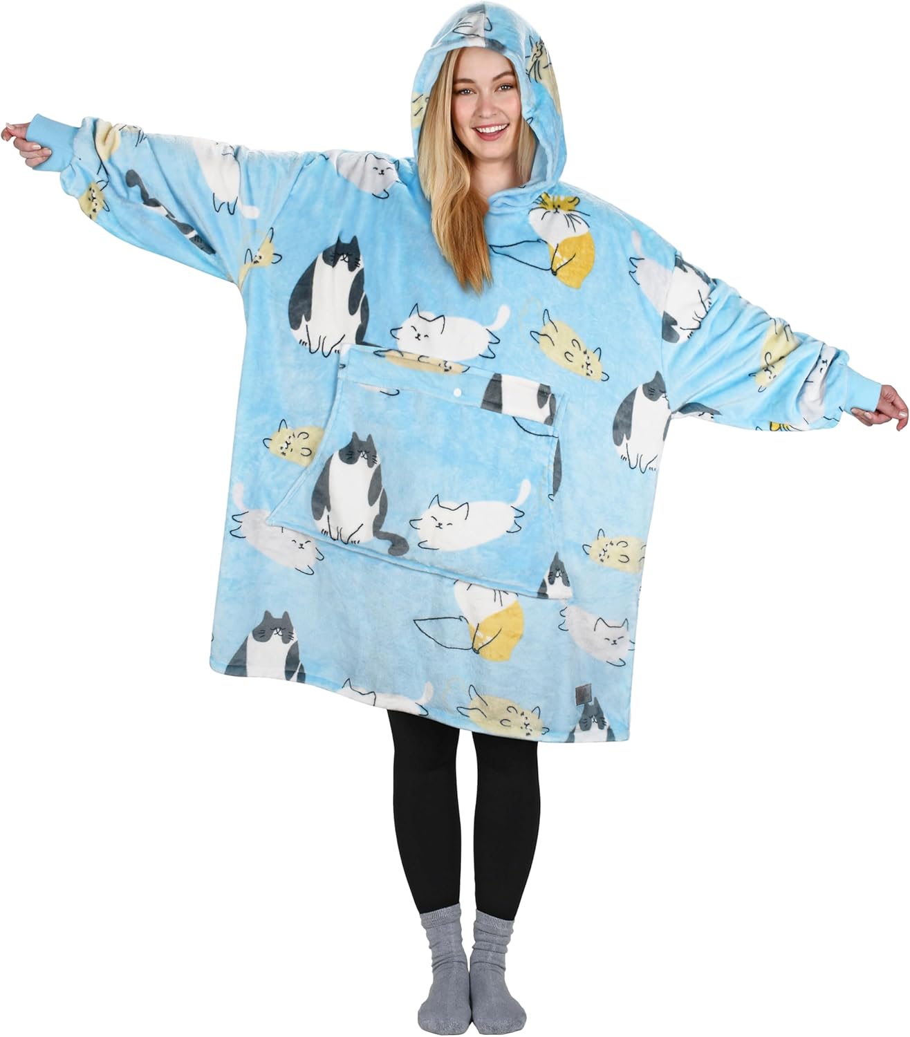 Catalonia Cat Print Oversized Blanket Hoodie Sweatshirt, Wearable Fleece Pullover for Adults Men Women