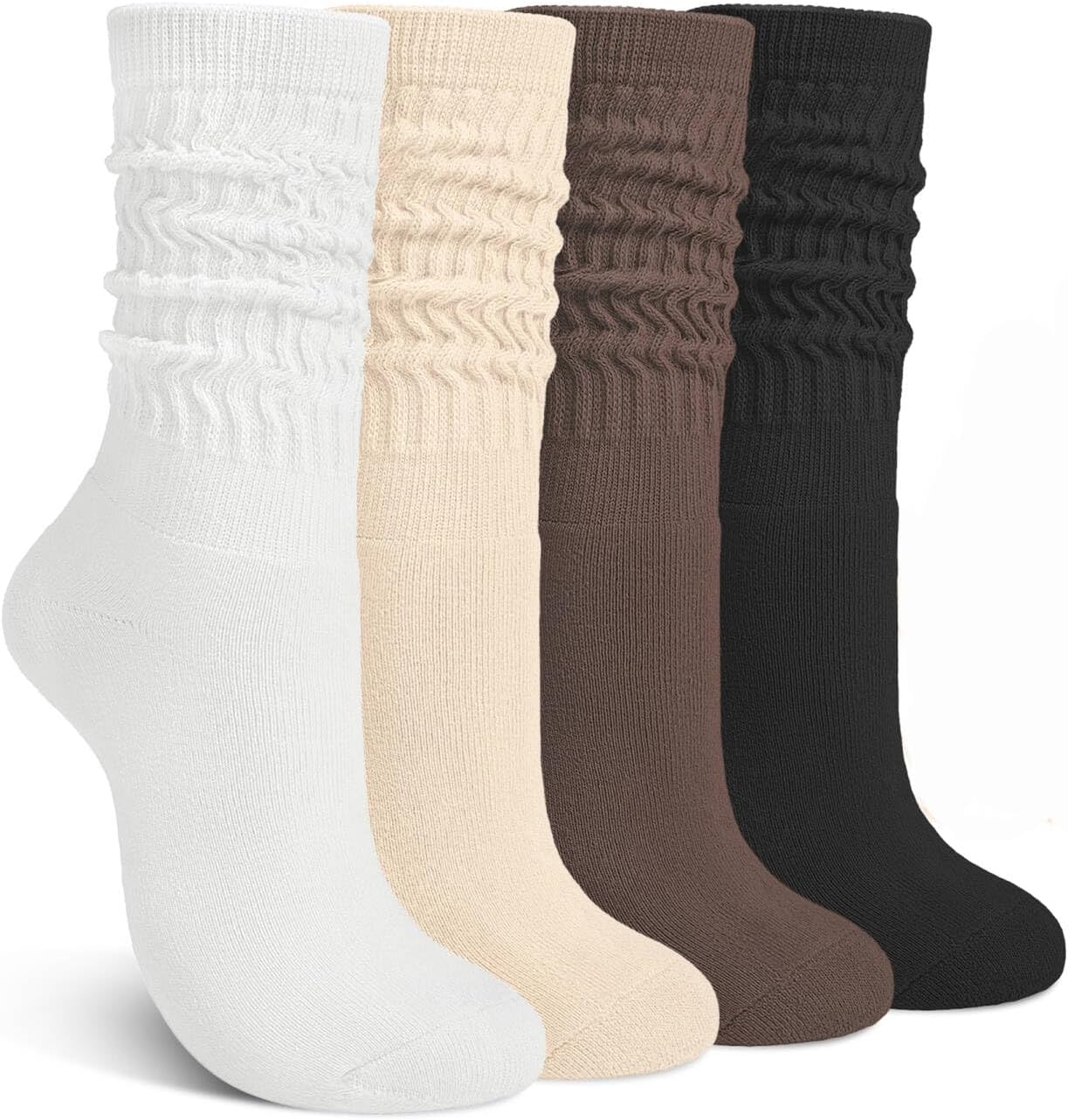 Justay 4 Pairs Slouchy Socks for Women, Cotton Scrunch Winter Warm Thick Long Boot Wool Fall Crew Slouch Socks Gifts