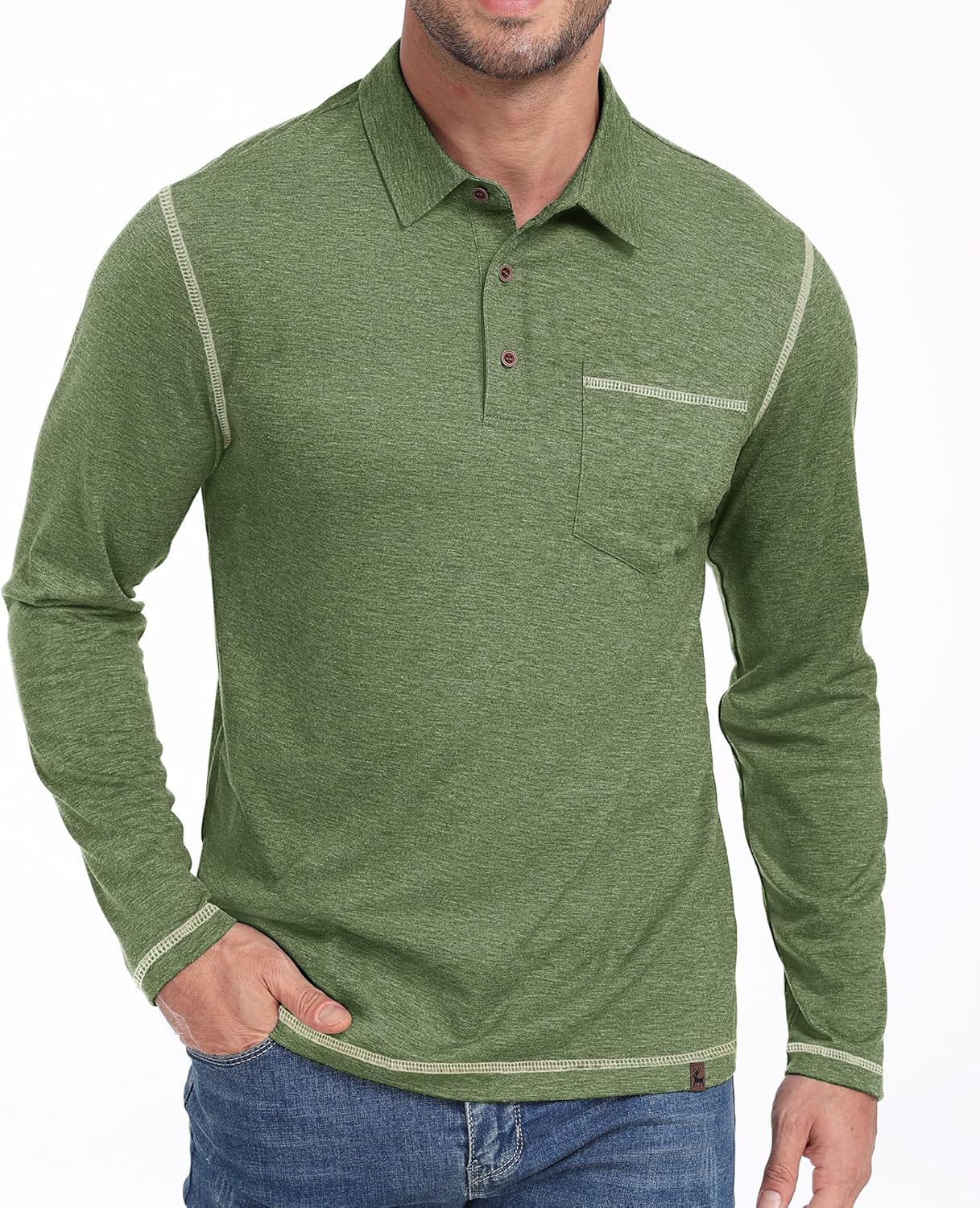ZITY Men's Casual Long Sleeve Polo Shirts Classic Button Cotton Work T-Shirt Collared Basic Golf Shirt with Pocket