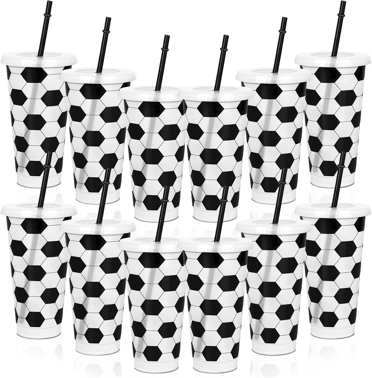 - Package List - Each pack comes with 12sets of 24oz soccer party cups with matching lids and straws for easy sipping on the go. Measuring 2.36 x 3.94 x 7.09 inches. Enjoy long-lasting gatherings without the hassle of constant refills with these convenient and stylish cups