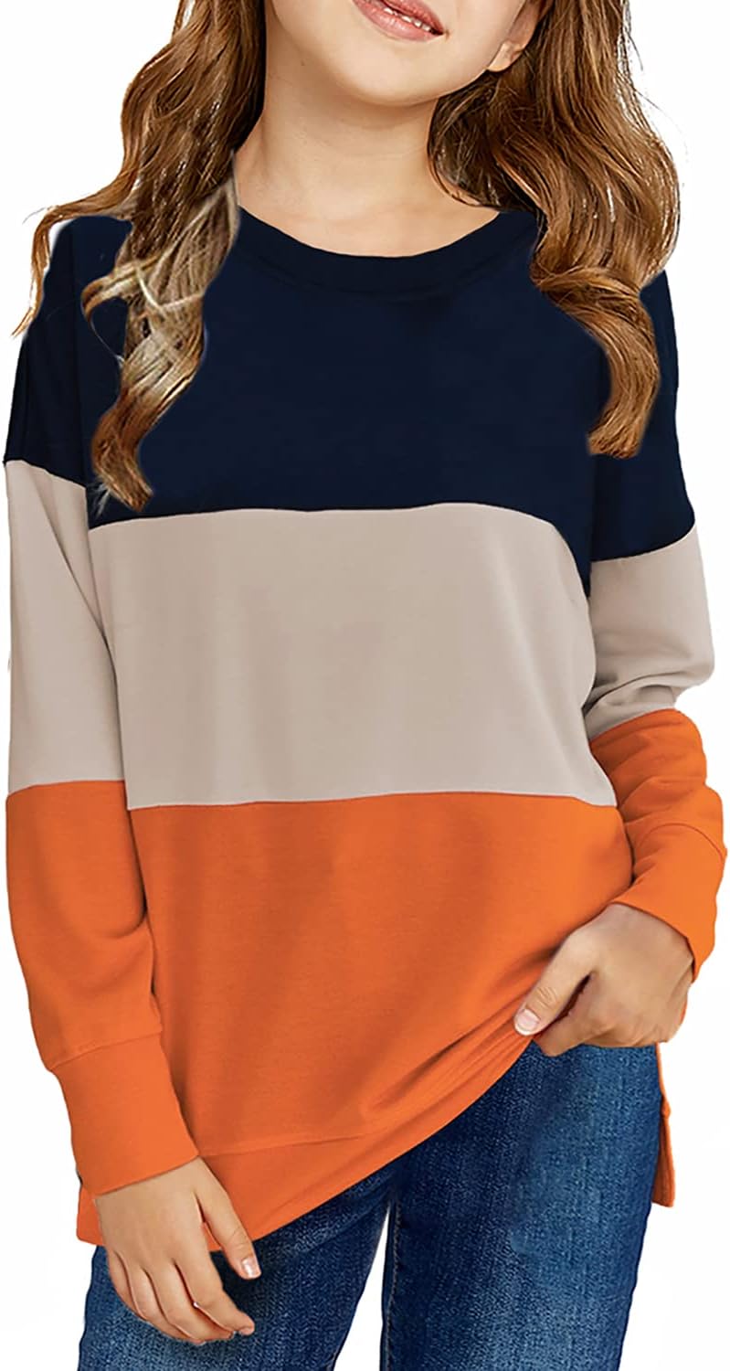 SELINK Girl's Casual Big Kids Long Sleeve Striped Color Block Casual Tees with Pockets