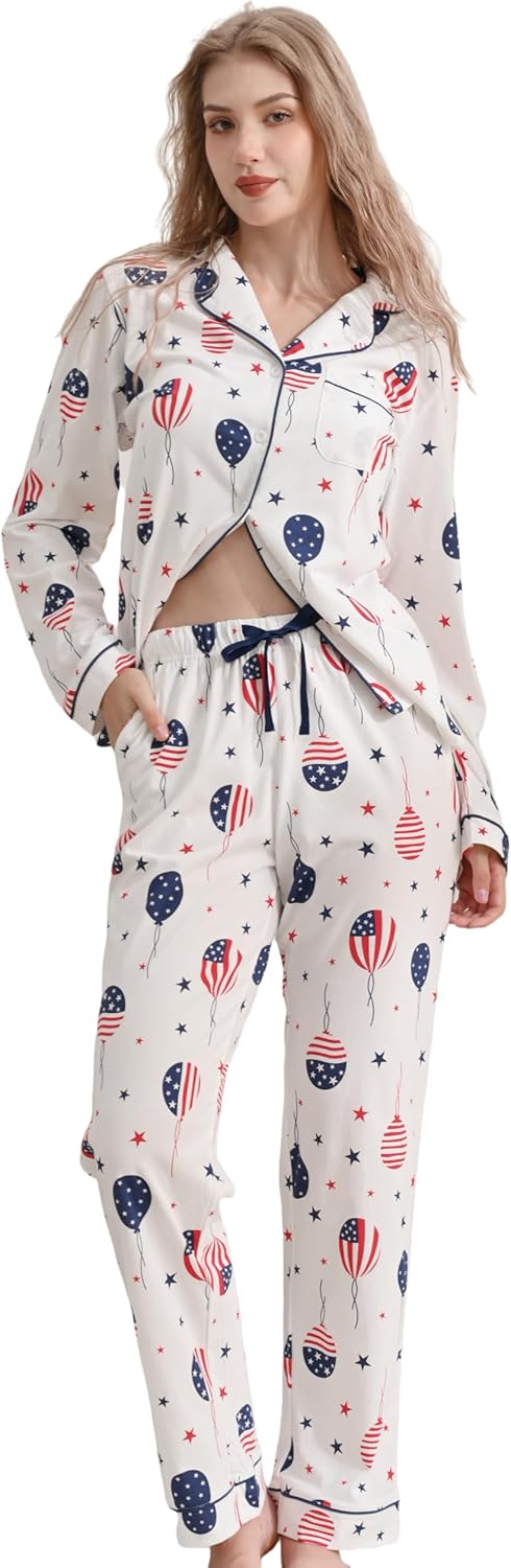 100% Cotton Pajama Sets for Women 2025 Holiday PJs Set Soft Long Sleeve Button Down Sleepwear XS-XXL