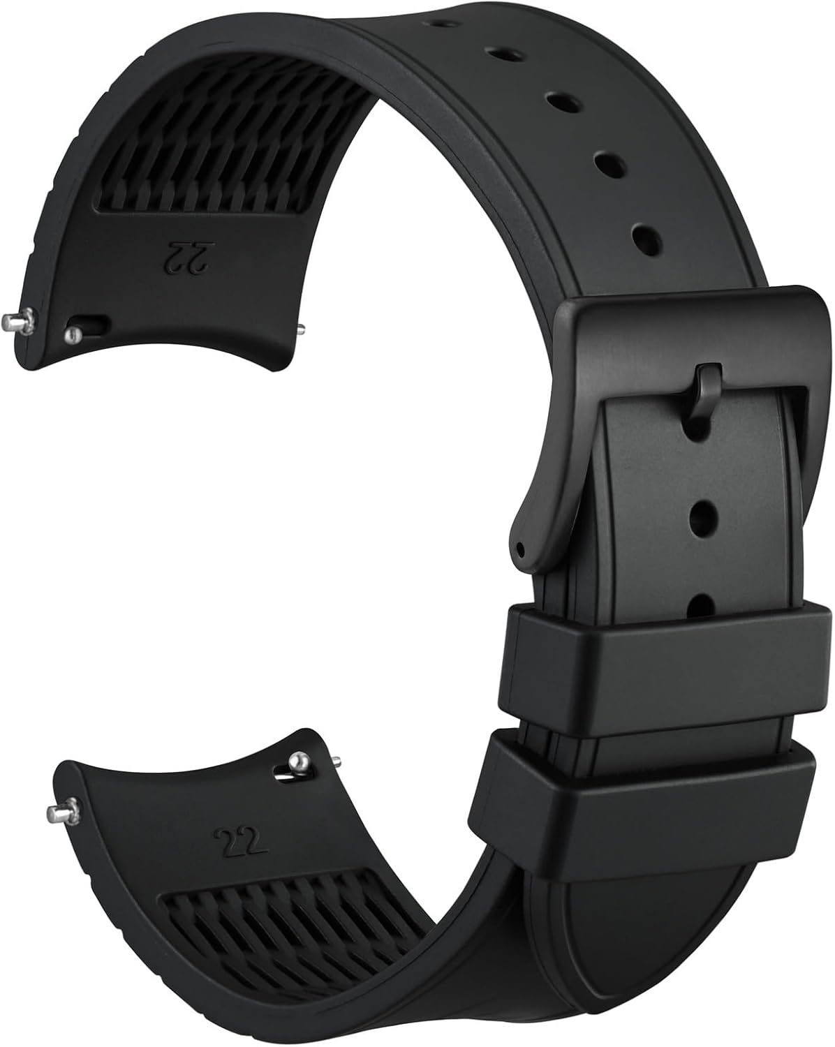 WOCCI 22mm Watch Band, Curved End, Silky Touch Silicone, Black Buckle (Black)