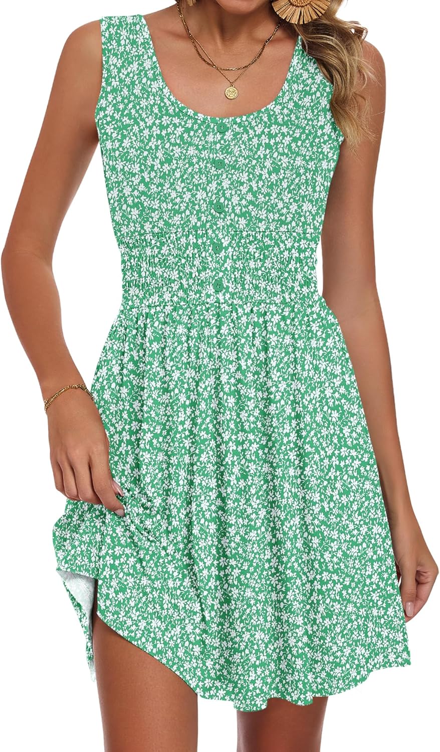 AUSELILY Women’s Button Down Sleeveless Dress Elastic Empire Waist Smocked Mini Dresses 2026 New