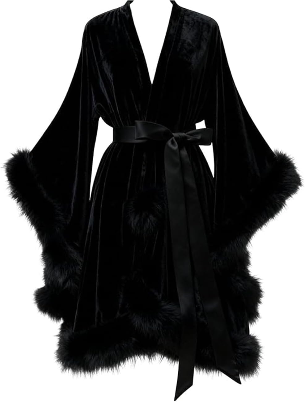 Women's Velvet Feather Bridal Robes Old Hollywood Maternity Photoshoot Nightgown Bathrobe Long Lingerie