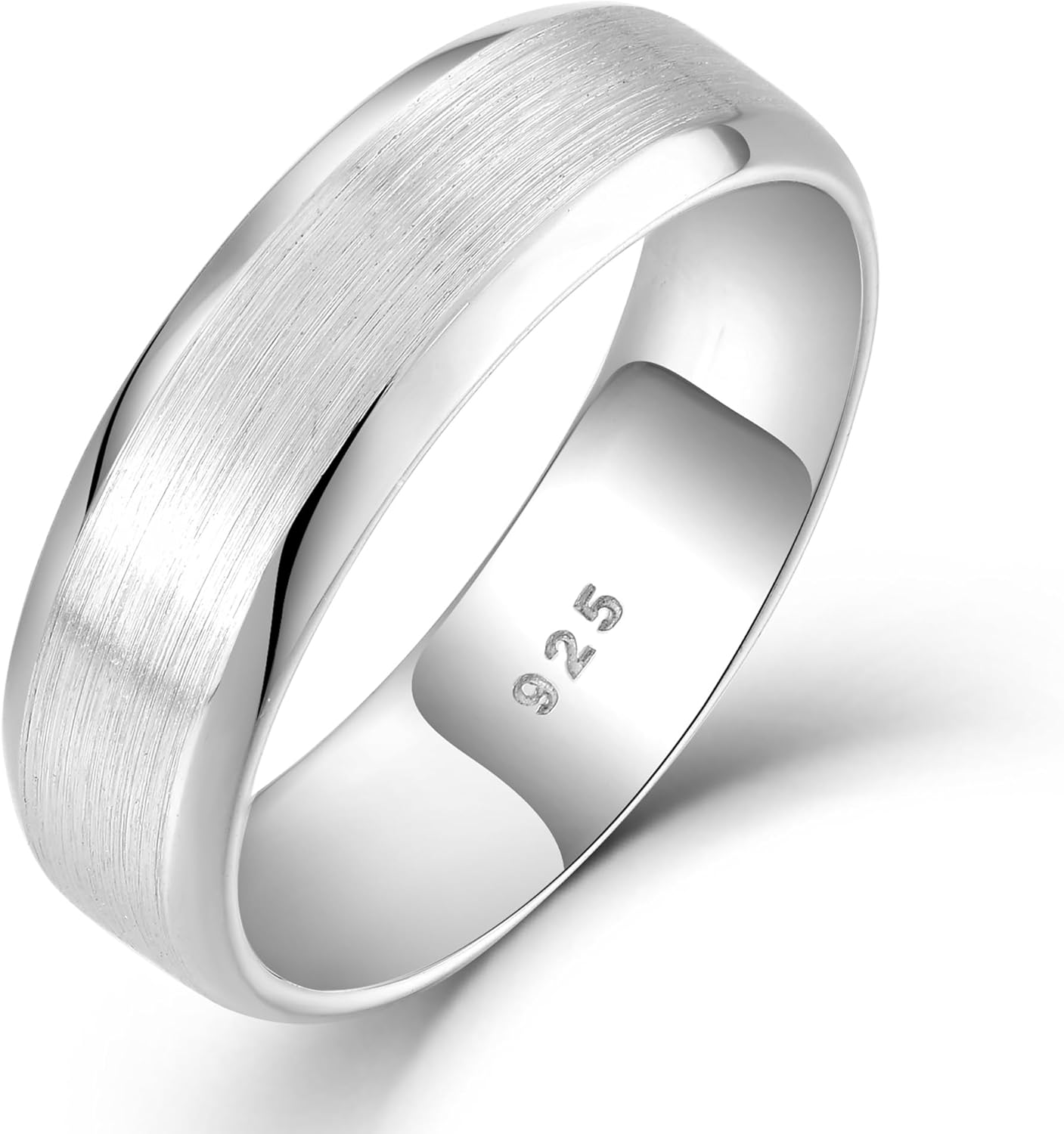 STARCHENIE 6mm Wedding Band Solid 925 Sterling Silver Ring for Men Comfort Fit Size 7-12