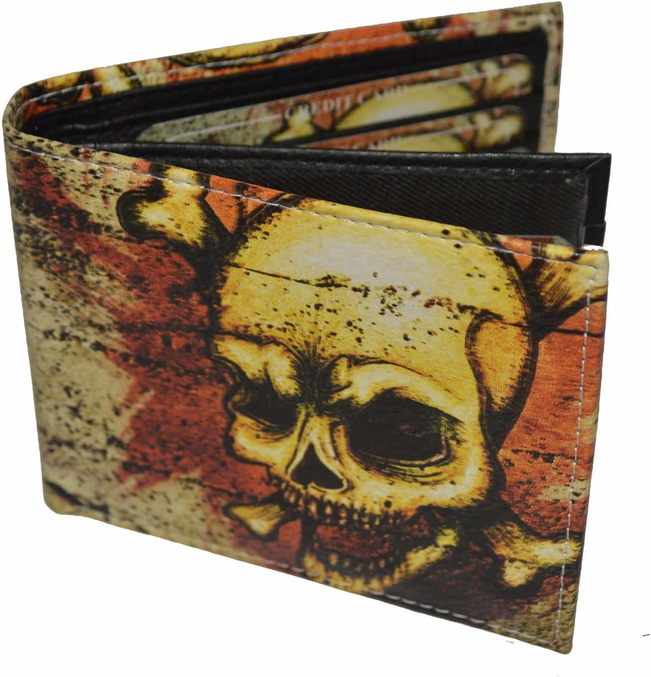 Leatherboss Printed Skull Theme Bifold Credit Card Cash Holder Wallet with Gift box for men