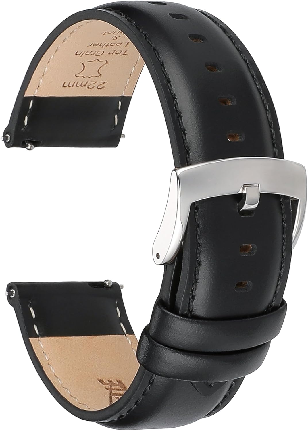 Leather Watch Bands Quick Release, Elegant Top Grain Leather Watch Straps Band Replacement for Men and Women, Watch and Smartwatch, Choice of Width 18mm 19mm 20mm 21mm 22mm