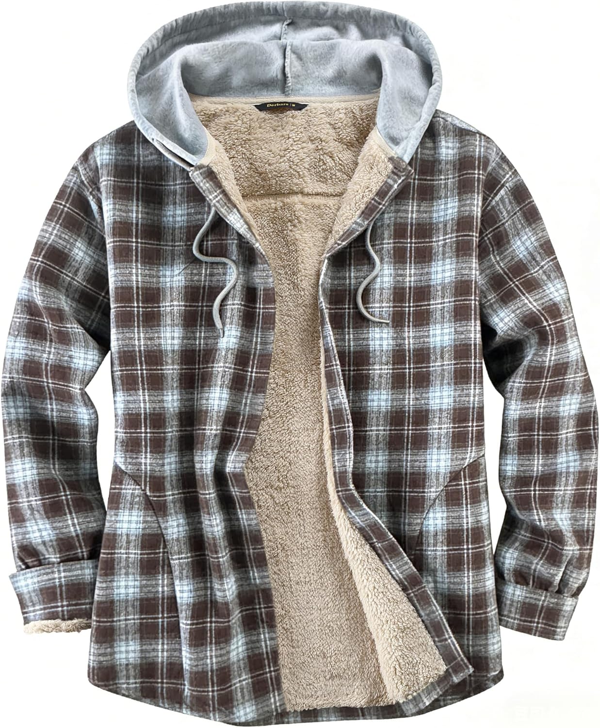 Women's Sherpa Lined Flannel Shirt Jacket Cotton Plaid Fleece Button Down Jackets with Hood for Women