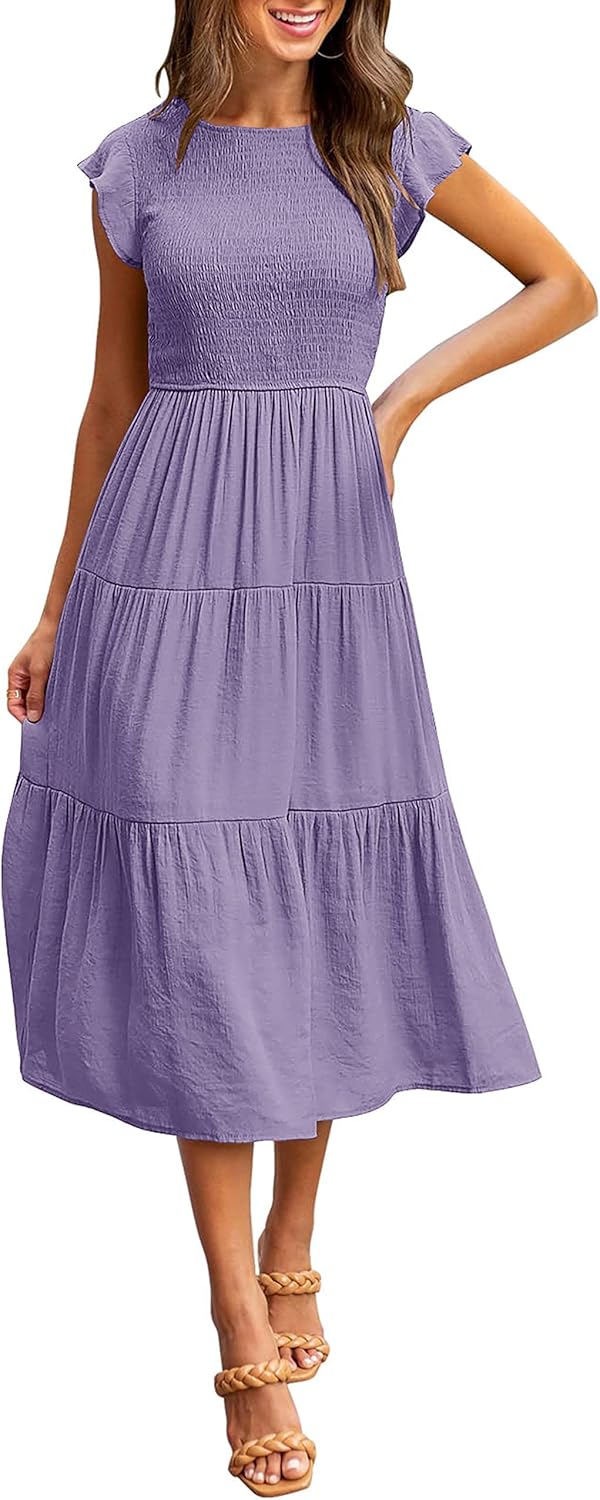 MEROKEETY Women's Flutter Short Sleeve Smocked Midi Dress Summer Casual Tiered A-Line Dress